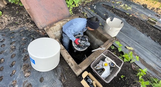 水道が出たりでなかったりという症状があり、現地調査に行くと、井戸ポンプの老朽化でした。部品供給が終了していたため、新品ポンプと交換しました。